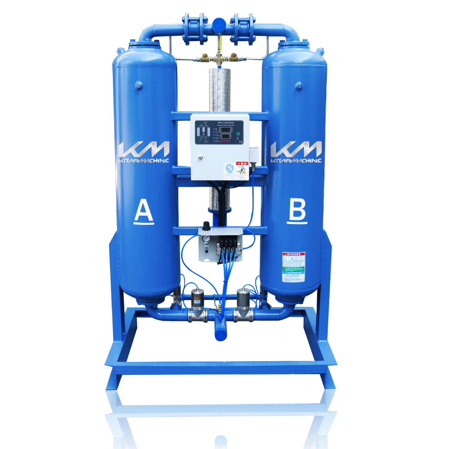 - С воздуходувкой (Blower Purge): Для регенерации используется атмосферный воздух, нагнетаемый вентилятором и нагреваемый. Потери сжатого воздуха минимальны (около 2,5%), что делает этот метод эффективнее безнагревного на 40% .