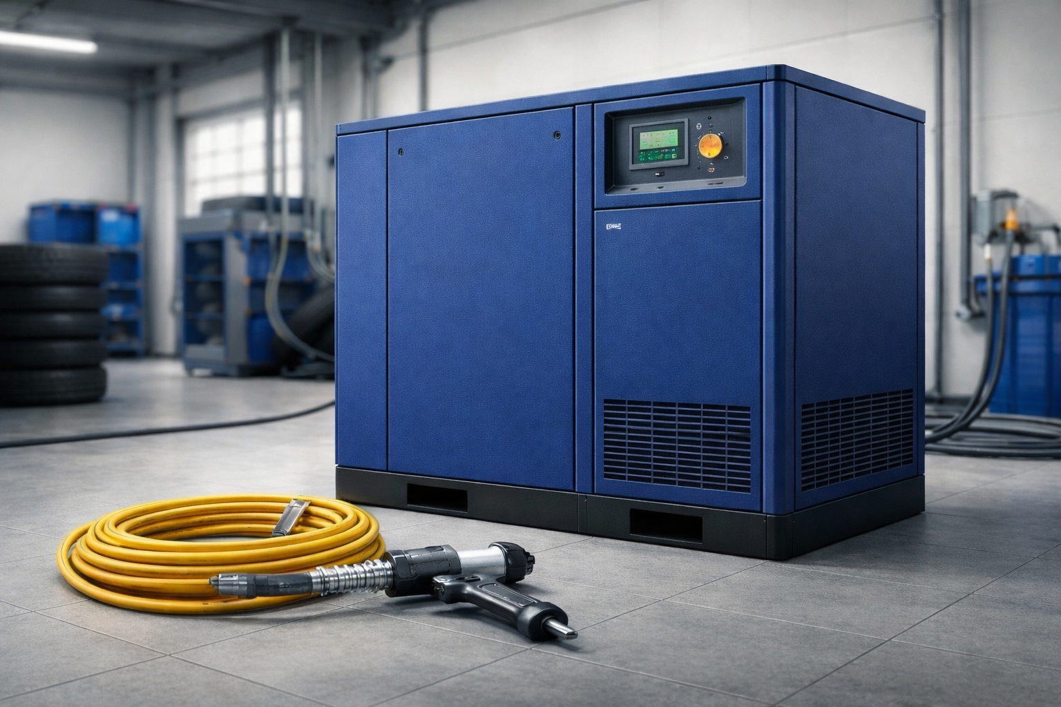 Компрессор — ключевое оборудование для шиномонтажа, от которого зависит скорость работы, стабильность давления и ресурс пневмоинструмента. В этой статье разберём, какой компрессор нужен для шиномонтажки, на какие параметры стоит обратить внимание при выборе и какие решения подходят для разных форматов шиномонтажа.